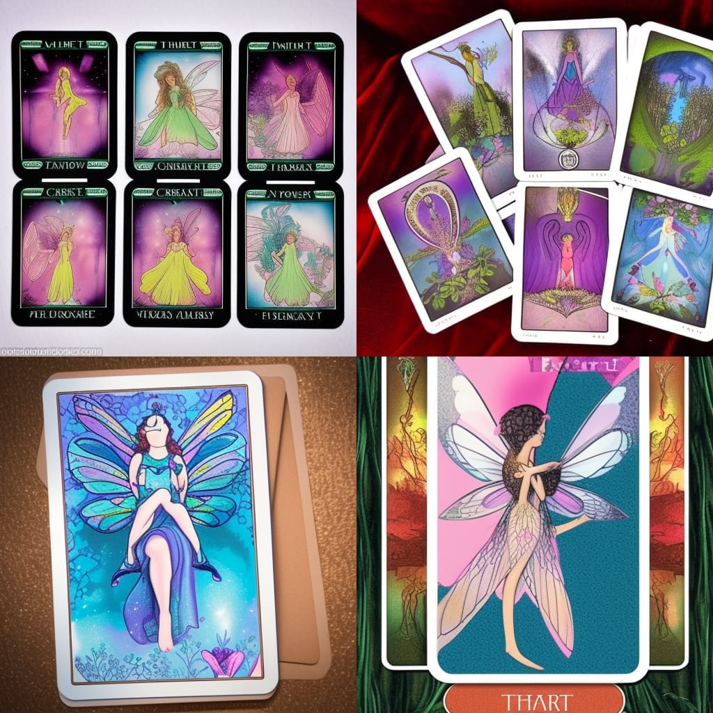 "create for me a modern fairy themed and designed four card tarot reading for this present moment presented in a modern setting"